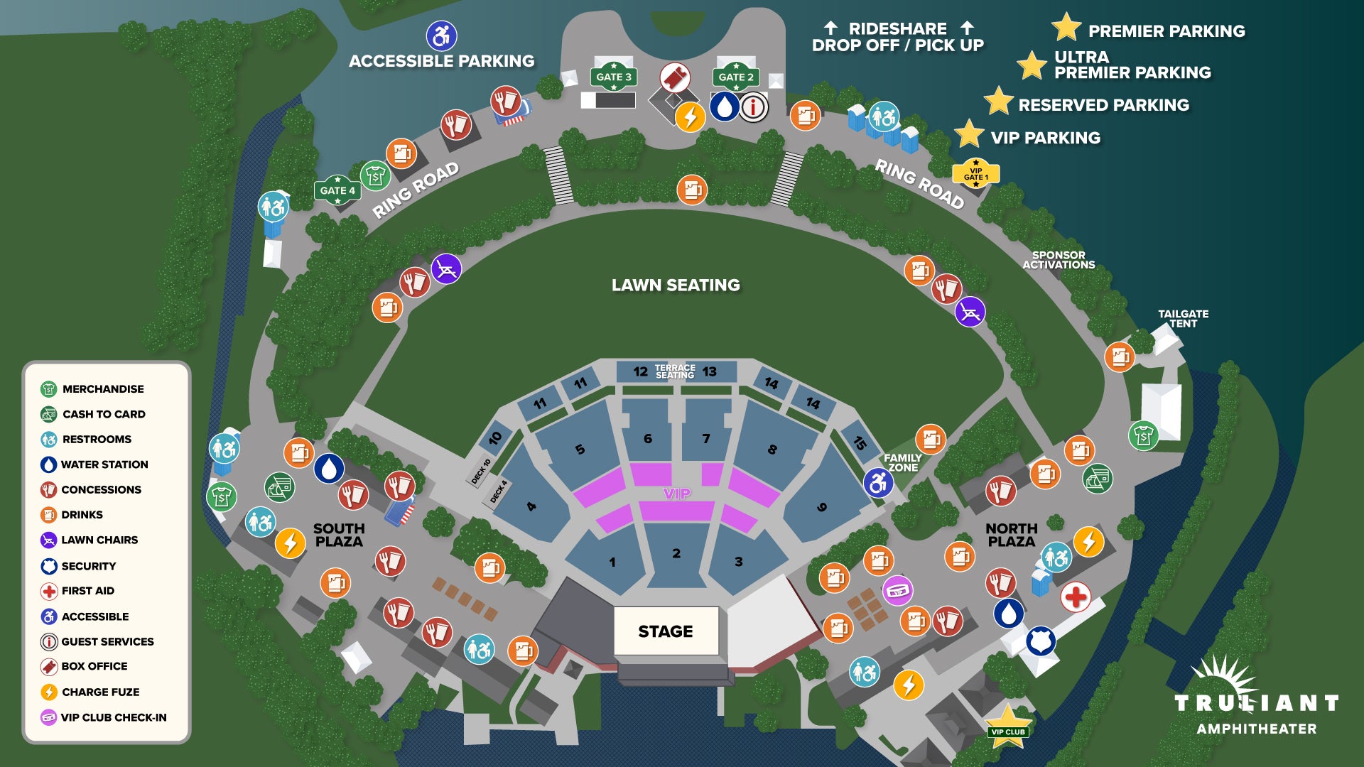 Get lost in the music. Not the venue. Truliant Amphitheater is the heart of music in Charlotte, here’s a map to help you get around.